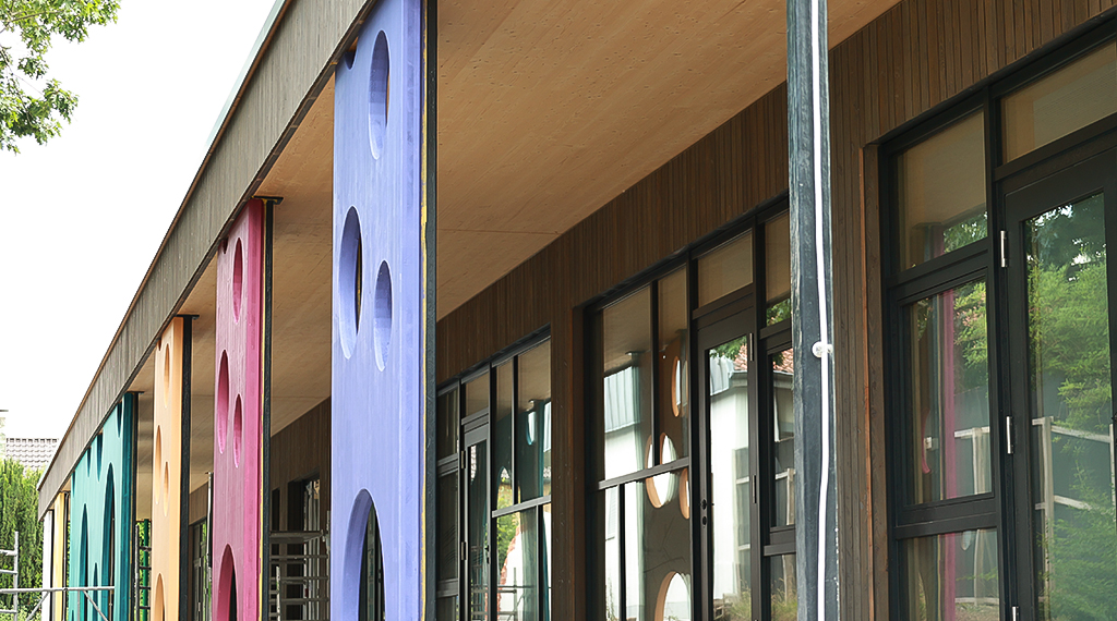 Gefertigt ist die Einrichtung im Massivbau. In der Teilunterkellerung ist die Heiz- und Lüftungstechnik verortet, was bedeutet, dass die Fenster zum Lüften nicht zwingend geöffnet werden müssen. Geheizt wird mittels Luft-Wärmepumpe über Fußbodenheizung. Auf dem Dach befindet sich eine Photovoltaik-Anlage. Der Neubau des Spatzennestes wurde in einem einzigen Bauabschnitt fertigt. Entstanden ist ein großes, ebenerdiges, lichtdurchflutetes Gebäude. Der alte Kindergarten wird in absehbarer Zeit, wenn die Kinder umgezogen sind, abgebrochen. Nach nur etwas mehr als einem Jahr Bauphase kann das Spatzennest in Kürze seiner Bestimmung übergeben werden, freuen sich die Planer des Architekturbüros MÖLLER VEY + PARTNER Architekten mbB. Mit den ersten Abbrucharbeiten wurde im Jahr 2023 begonnen. Die Rohbauarbeiten konnten im Jahr 2024 fertiggestellt werden.