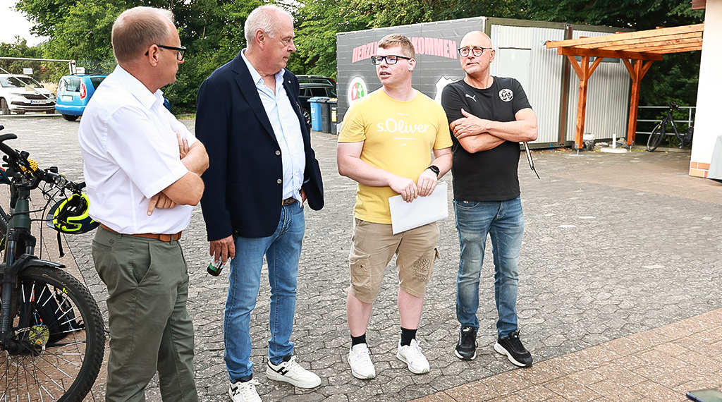Am Sportplatz der SG Edelzell endete die dritte Stadtteilbegehung, wo an die Stadtverordnetenfraktion vom Vereinsvorstand der Wunsch nach einem Kunstrasenplatz adressiert wurde. Über neue Nutzungsstrukturen, was die gemeinschaftliche Nutzung des Vereinsgebäudes unterschiedlicher Vereinssparten betrifft, würde sich der Vorstand der SG Edelzell freuen. Bürgermeister und Sportdezernent Dag Wehner nahm die Anregungen und Wünsche auf. +++ jessica auth