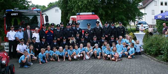 Im Anschluss an das offizielle Programm feierten die Gäste noch einige schöne Stunden bei musikalischer Unterhaltung durch das Duo „Malibu“. Die ortsansässigen Vereine unterstützten die Feuerwehr bei der Verköstigung der Gäste. Die anwesenden Kinder hatten Spaß in einem eigens aufgebauten Kinderbereich. Viele interessierte Bürgerinnen und Bürger sowie Mitglieder der Feuerwehr-Familie besichtigten die Fahrzeuge und ließen sich Details erklären. +++ pm