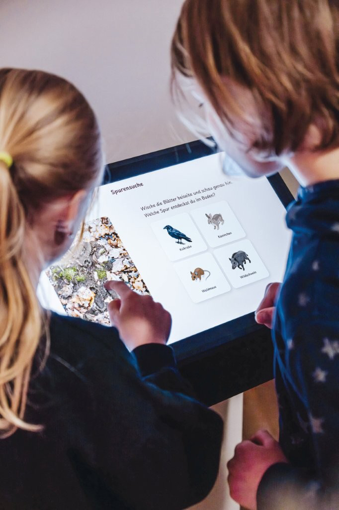 Die digitale Medienstation lädt dazu ein, die Bewohner des Dioramas „Urwald auf Blockhalde“ kennenzulernen:Wildkatze, Kolkrabe & Co. geben Einblicke in ihren Lebensraum, ihre Lebensweise und die Herausforderungen, denen sie in der Natur begegnen. Ergänzend ist es möglich, an der Station sein Wissen über Waldtiere zu testen und überraschende Naturfakten kennenzulernen.