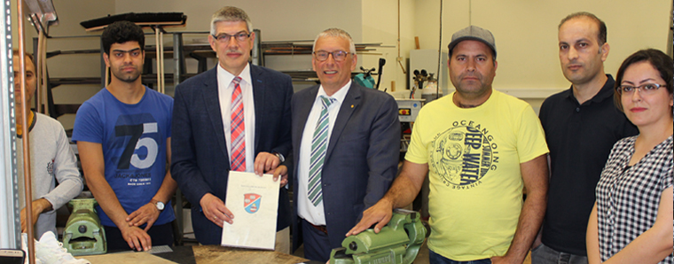 Landrat Manfred Görig übergibt BZL-Geschäftsführer Stefan Eisenbach den Bewilligungsbescheid für die neue Qualifizierungsmaßnahme. Foto: Sabine Galle-Schäfe