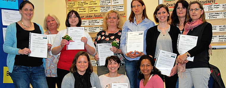 Fulda. Im Rahmen des Bundesprogramms „Kindertagespflege“ haben elf Absolventinnen den ersten Teil des Kurses nach der neuen kompetenzorientierten Qualifizierung bestanden. Das neue Konzept umfasst statt 189 nun 300 Lerneinheiten. Die Teilnehmerinnen absolvieren einen tätigkeitsvorbereitenden und einen tätigkeitsbegleitenden Teil. Schwerpunkt der Qualifizierung ist die Theorie-Praxis-Verzahnung, die durch jeweils ein 40-stündiges Praktikum in einer Kindertagespflegestelle und in einer Kindertagesstätte verstärkt wird. Nach Abschluss des tätigkeitsvorbereitenden Teils können die Tagesmütter nun ab Mai mit der Betreuung ihrer ersten Tageskinder starten. Der zweite tätigkeitsbegleitende Teil der Qualifizierung beginnt dann im September. Stadt und Landkreis Fulda setzen seit 2016 gemeinsam mit der VHS des Landkreis Fulda als einer von 30 Modellstandorten das Bundesprogramm Kindertagespflege „Weil die Kleinsten große Nähe brauchen“ um. Der nächste Kurs beginnt Mitte Mai 2017. +++