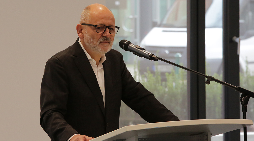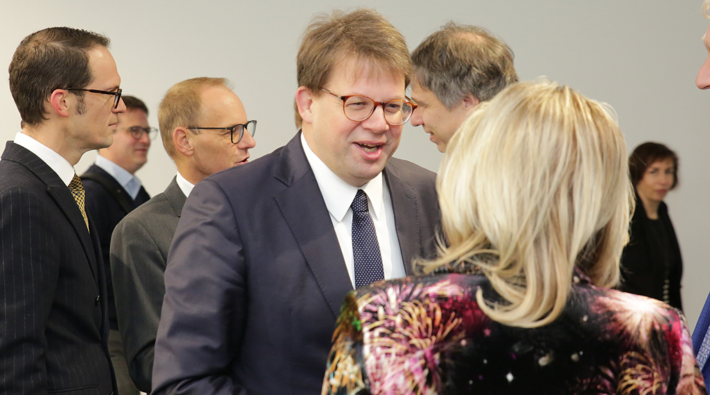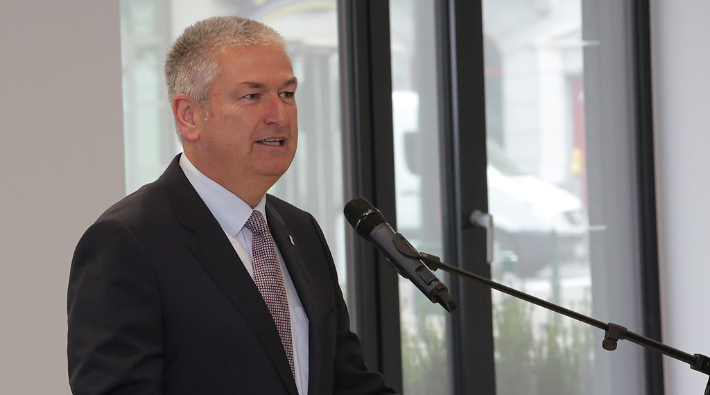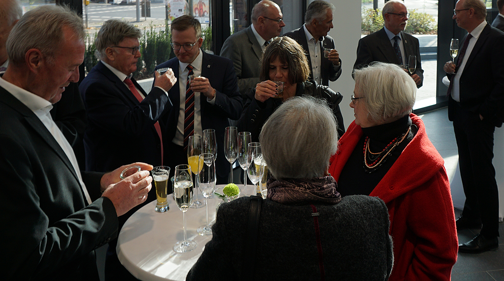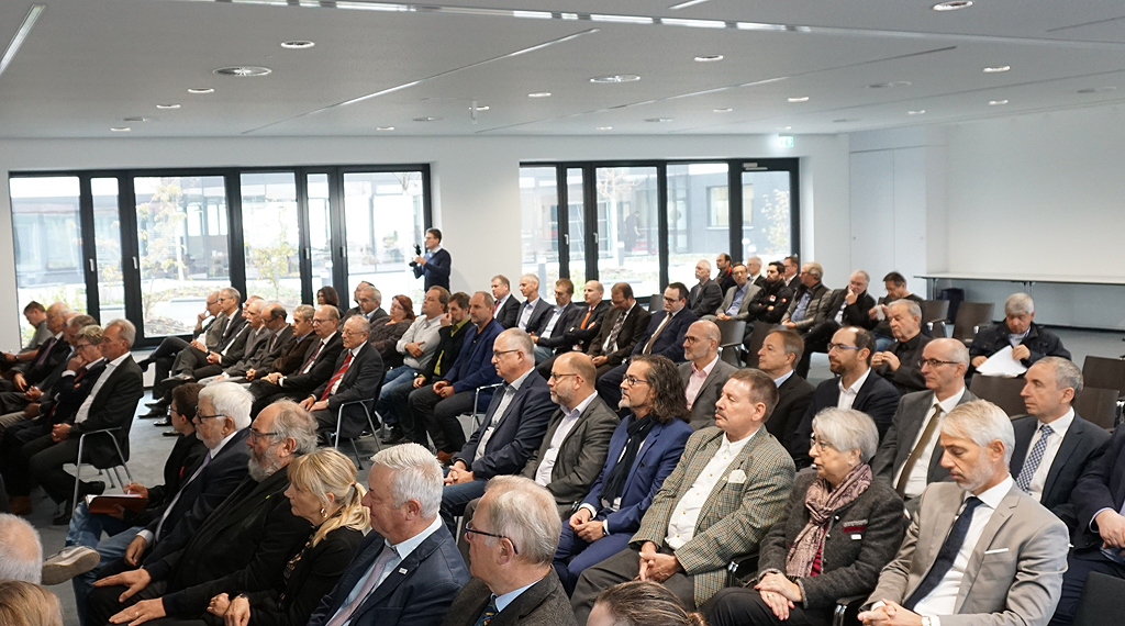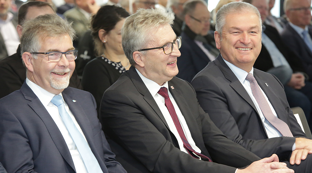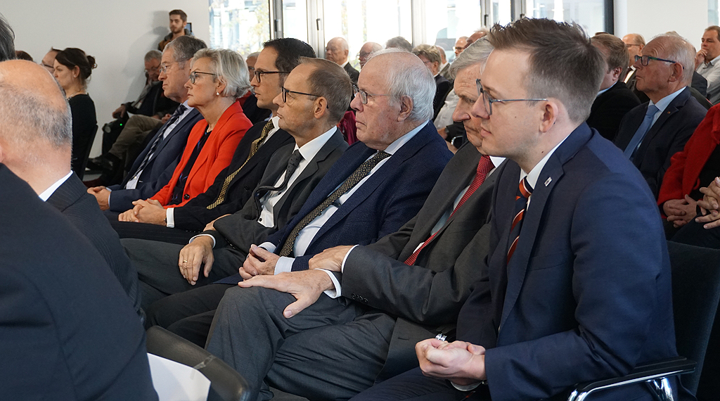 Der Landrat des Landkreises Fulda und Vorsitzende des Aufsichtsrates der RhönEnergie Fulda, Bernd Woide (CDU), überbrachte der RhönEnergie Fulda GmbH die besten Grüße sowie Glückwünsche des Landkreises. „Heute kommt die Bautätigkeit zum Abschluss, darüber sind wir alle froh“, sagte er. Nebenstehend dankte er all denjenigen, die sich für den Bau verantwortlich zeigen. „Ein Bauprozess wie dieser ist kein trivialer Vorgang“, sagte er und dankte allen, die sich in der Vergangenheit für das Gebäude engagiert hatten. In diesem Kontext rief er vergangene Aufsichtsratssitzungen wieder in Erinnerung, als vor der Fusion der Gas- und Wasserversorgung und der ÜWAG zur RhönEnergie Fulda GmbH die Verantwortlichen noch vor der Frage standen, wie man aus zwei Unternehmen ein Unternehmen werden lässt. So etwas, so Woide, könne man beschließen und wünschen, aber eben nicht durchführen. „Und deswegen bin ich der Geschäftsführung der RhönEnergie Fulda dankbar, dass sie bereits sehr früh erkannt und gesagt hat: ‚Wenn man diese Unternehmen in einer langjährigen Tradition – aber natürlich auch mit unterschiedlichen Unternehmenskulturen zusammenführt, dann brauchen wir hierfür auch einen gemeinsamen Platz‘, zitierte Landrat Woide die Geschäftsführung des Ankermieters. „Und das alles stärkt ein Unternehmen und schafft ein Arbeitsklima, indem ein gemeinsames Arbeiten möglich wird und auch zum Erfolg führt“, sagte der Landrat des Landkreises Fulda und Vorsitzender des Aufsichtsrates der RhönEnergie Fulda, Bernd Woide, anlässlich der Einweihung der neuen Zentrale der RhönEnergie Fulda am Mittwoch in Fulda.
