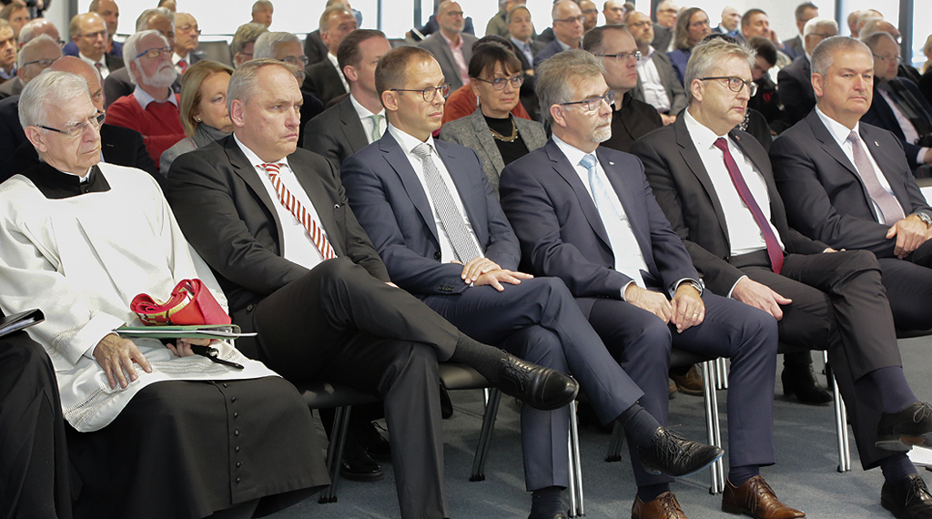Es ist vollbracht: Nur anderthalb Jahre nach der Grundsteinlegung im April 2018 ist das neue Verwaltungsgebäude der RhönEnergie Fulda-Gruppe am Löhertor bezugsfertig und wurde vom Bauherrn an den Energieversorger übergeben. In einem Festakt würdigten die Projektpartner sowie prominente Vertreter der Gebietskörperschaften das Großprojekt als städtebaulichen Meilenstein. Die Einweihung der neuen Zentrale sei eine Zäsur in der langen Unternehmensgeschichte und gleichsam der bauliche Abschluss der 2013 vollzogenen Fusion, unterstreicht Martin Heun, Sprecher der Geschäftsführung der RhönEnergie Fulda. „Wir freuen uns sehr auf unsere neue Zentrale. Hier werden Mitarbeiter aus allen Bereichen der Gruppe unter einem Dach zusammen sein. Die kurzen Wege erleichtern die internen Abläufe und das ist natürlich auch von Vorteil für unsere Kunden.“