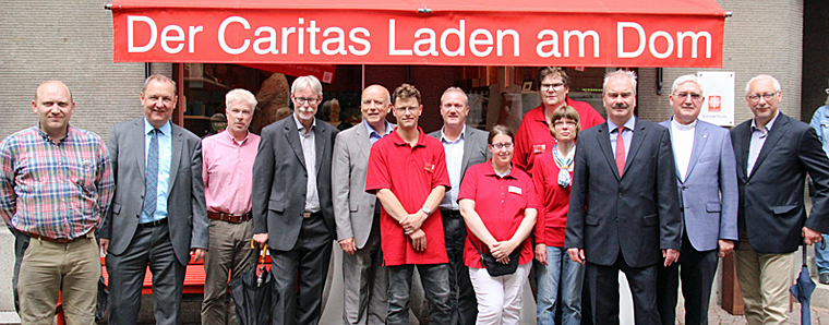 Fulda. Eine Woche „Probelauf“ gab es schon, nun hat der „Caritas Laden am Dom“ offiziell aufgemacht. Im Kreise des Verkäufer-Teams, Vertretern der Caritas und der Medien bedankte sich Diözesan-Caritasdirektor Dr. Markus Juch bei der Behindertenhilfe für die Umsetzung der langgehegten Idee eines eigenen Caritas-Ladens an einem gut frequentierten Platz in der Innenstadt, um die vielseitigen und originellen Produkte der Caritas und ihrer Werkstätten zu präsentieren. „Jetzt haben wir dieses schöne Schaufenster, das wir uns wünschten“, resümierte Caritasdirektor Juch, der den Verkäuferinnen und Verkäufern von der Carisma-Werkstatt für psychisch kranke Menschen zu ihrem neuen, interessanten Arbeitsplatz gratulierte und ihnen viel Erfolg wünschte.