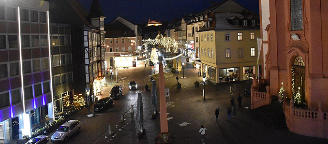 Wer derzeit – natürlich unter Beachtung der nächtlichen Ausgangssperre – nach Einbruch der Dunkelheit in der Fuldaer Friedrichstraße, am Platz Unterm Heilig Kreuz, in der Marktstraße oder am Borgiasplatz unterwegs ist, hat es möglicherweise schon bemerkt: Seit Anfang des Monats hat sich die Beleuchtung der markanten historischen Bauten verändert. Das neue Beleuchtungskonzept gehorcht dem Motto: „Weniger Licht ist mehr“ und trägt auch den Erfordernissen der „Sternenstadt Fulda“ Rechnung.