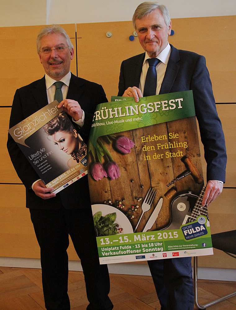 Die Vielfalt ist es, was Fulda als osthessisches Oberzentrum unverwechselbar macht. Je nach Event, ist das neue Corporate Design „Spüre Fulda“ individuell übertragbar. Da steht zum Beispiel das kommende Frühlingsfest für „Mehr Genuss“ oder die unter dem Motto „Glanzlichter“ stehende Modenschau, für Mehr Lifestyle“. Unter allen eingereichten Vorschlägen, wie man das Innenstadtkonzept am Besten vermarkten kann, wurden 2 Plakate visuell verwirklicht: Für die Modenschau am 10. April, das Plakat „Glanzlichter“ und zum Zweiten, das Plakat mit dem Titel „Frühlingsfest“ (13. bis 15. März 2015). +++ fuldainfo | jessica auth