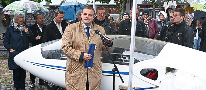Florian Wehner, Fluglehrer des Vereins, bedankte sich bei Tschesnok, der Stadt Hünfeld sowie allen anderen „starken Partnern, Freunden und Gönnern“ für die Unterstützung. So steuerte unter anderem das Land Hessen 10.000 Euro, der Landkreis Fulda 2.000 Euro sowie die VR-Bank NordRhön eG 500 Euro bei, um die Anschaffungskosten von 120.000 Euro stemmen zu können.