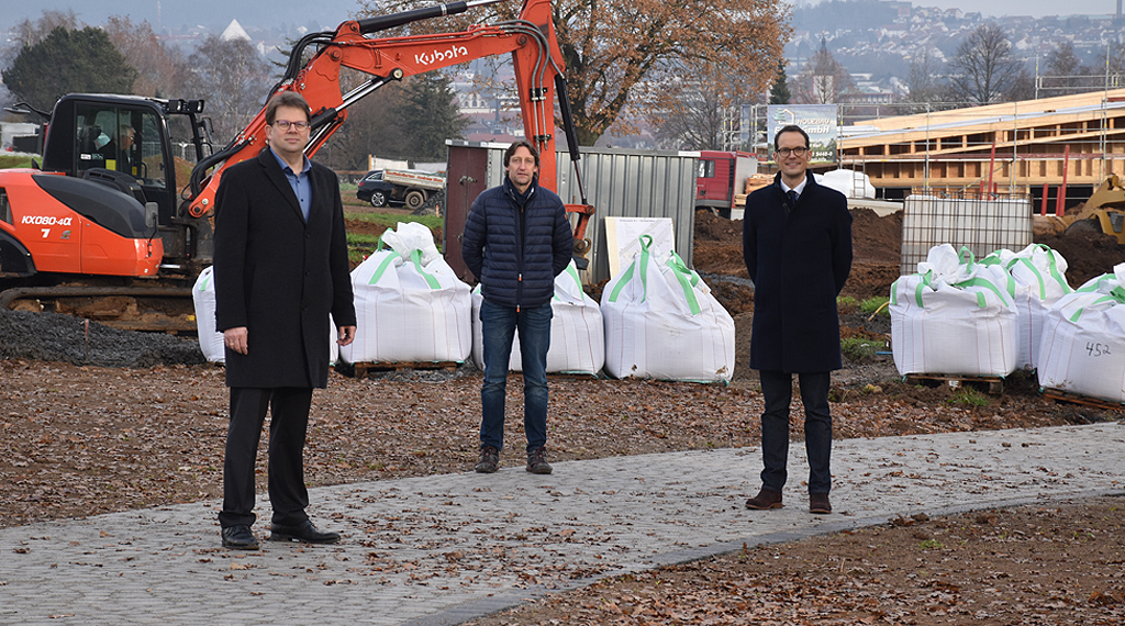 Die Umgestaltung des Tiergartens in Neuenberg im Zuge der Landesgartenschau 2023 schreitet mit großen Schritten voran. Im September war der Spatenstich für den neuen Wirtschaftshof erfolgt, jetzt konnten Oberbürgermeister Dr. Heiko Wingenfeld und Stadtbaurat Daniel Schreiner bereits den Rohbau besichtigen. Die Fertigstellung ist für Ende April 2021 geplant, heißt es in der Mitteilung der Stadt.