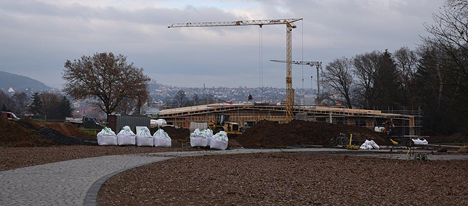 Die Umgestaltung des Tiergartens in Neuenberg im Zuge der Landesgartenschau 2023 schreitet mit großen Schritten voran. Im September war der Spatenstich für den neuen Wirtschaftshof erfolgt, jetzt konnten Oberbürgermeister Dr. Heiko Wingenfeld und Stadtbaurat Daniel Schreiner bereits den Rohbau besichtigen. Die Fertigstellung ist für Ende April 2021 geplant, heißt es in der Mitteilung der Stadt.