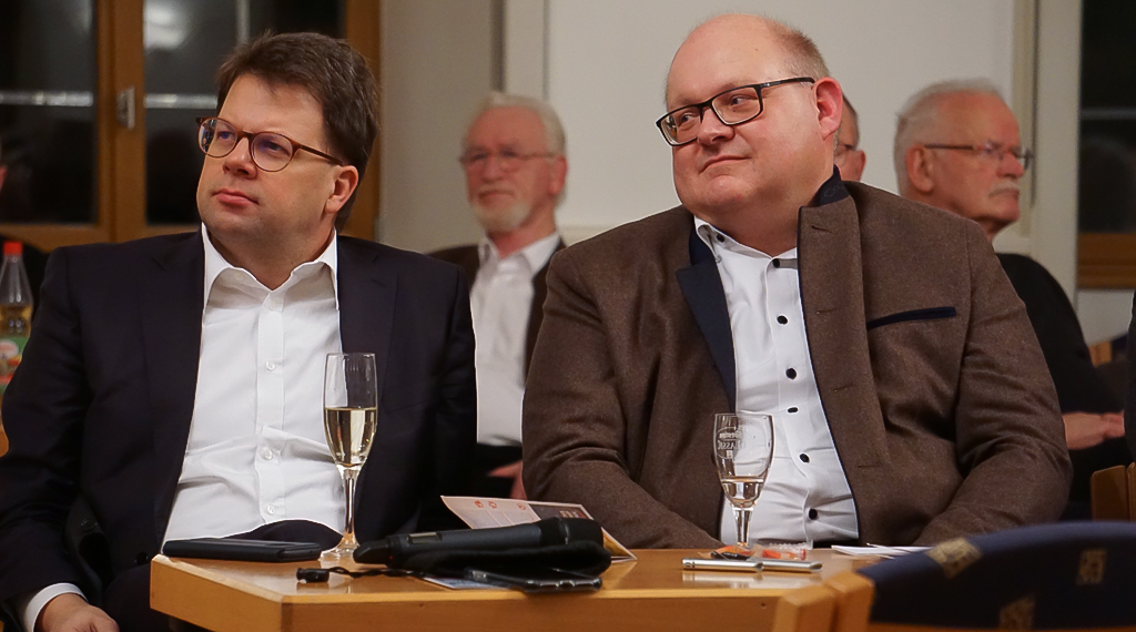 Im zweiten Teil der Veranstaltung wurde eine lebhafte Diskussion mit Finanzminister Thomas Schäfer und Johannes Rothmund gestartet, wo speziell Themen behandelt wurden, die Eichenzell betreffen und womit sich die Bürger beschäftigen. Einstiegsthema war die Diskussion um die Großstadt Fulda. Hier bezog Johannes Rothmund eine klare Position und brachte zum Ausdruck, dass er neben den berechtigten Interessen der Gesamtgemeinde Eichenzell auch immer die gesamte Region im Blick habe. „Zukunft ist, dass wir uns als kommunale Familie verstehen und in der Region gemeinsame Projekte angehen, die Sinn machen“, sagte er. Die effektive Zusammenarbeit mit den Nachbarkommunen sei ihm im Hinblick seiner Kandidatur als Bürgermeister sehr wichtig. Er lobte die vielfältige Industrie und Wirtschaft, deren guten Arbeitsplätze und wünschte sich hier eine Weiterentwicklung der bisherigen Bemühungen für eine florierende Gemeinde. Viel Applaus erfuhr Rothmund bei seiner Aussage, dass man immer miteinander und nicht gegeneinander reden muss, wenn es in einer Gemeinde zu Konflikten kommt und dass man die besten Gespräche zunächst erst mal ohne die Öffentlichkeit führt. Das Thema „Großstadt Fulda“ hat auch den anwesenden Heinz Reuen beflügelt, der klar Stellung bezog, dass die Gemeinden Petersberg, Künzell und Eichenzell zur Barockstadt Fulda gehören. „Fulda für sich allein ist eher eine größere Kleinstadt“, befand er. Johannes Rothmund informierte darüber, dass die Region immerhin über 250.000 Einwohner hat und er lobte die Region als einen sehr erfolgreichen Landkreis in Hessen. „Wir sollten die Region Fulda behutsam entwickeln und wir sollten weiterhin konstruktiv zusammenarbeiten mit allen Gemeinden der Region“, so Rothmund. Bei der Diskussionsrunde wollte Manfred Neidhart als ehemaliger Gemeindevertreter den Standpunkt zum Thema „Interkommunale Zusammenarbeit“ von Rothmund erfahren. Auch hier erklärte Rothmund, dass man bei diesem Thema auch die Gesamtregion im Blick haben müssen während der anwesende Oberbürgermeister Dr. Heiko Wingenfeld dieser Sichtweise deutlich zustimmte.