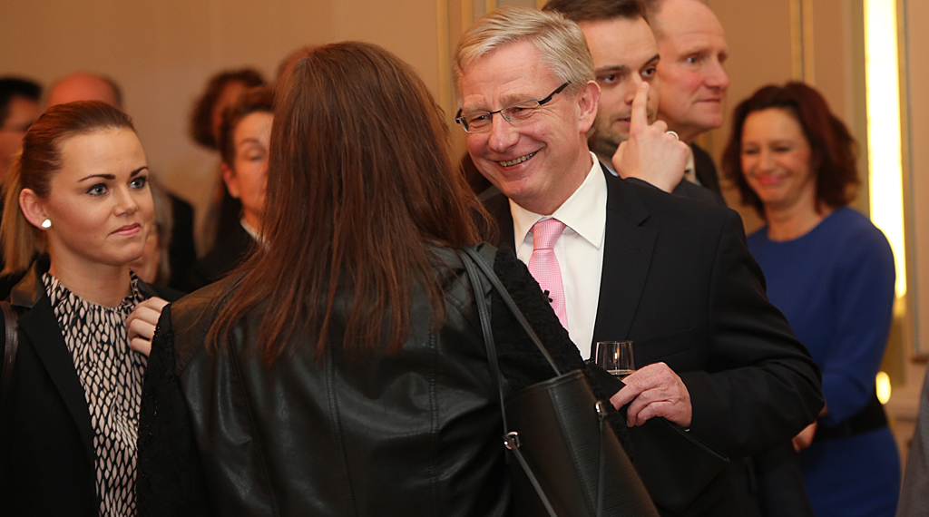 Eichenzell. Etwa 180 – darunter zahlreiche Vertreter aus Politik und Wirtschaft sowie dem Öffentlichen Leben – fanden gestern Nachmittag den Weg in den Kultursaal des Eichenzeller Schlösschens zum traditionellen Neujahrsempfang der Gemeinde im Landkreis Fulda. Hohen Besuch erfuhr die Gemeinde durch den Botschafter der Republik Irland Michael Collins, der dem Empfang mit Gattin Mary beiwohnte. Collins war auf dem Jahresempfang der Gemeinde Eichenzell am Freitagabend nicht nur Ehrengast, sondern auch Hauptredner. In Collins Vortrag „All Around Ireland“ – im Besonderen – Irlands wirtschaftlicher Aufschwung sowie die auf vielfältiger Weise, positiven Deutsch-irischen Beziehungen, zur Sprache kamen.