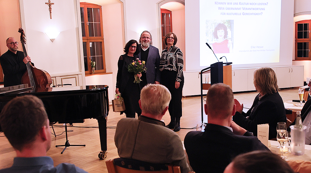 Zum Abschluss richtete sich der Blick auf die Zukunft: auf das neu gewählte Jugendparlament, auf anstehende Haushaltsentscheidungen und auf die grundlegende Frage, die den Abend thematisch rahmte. Können wir uns Kultur noch leisten – und wer trägt Verantwortung für kulturelle Gerechtigkeit? Mit dieser Frage übergab der Bürgermeister das Wort an die neue Intendantin der Bad Hersfelder Festspiele, Elke Hesse, deren Festrede den politischen Jahresauftakt in Eichenzell beschloss.
