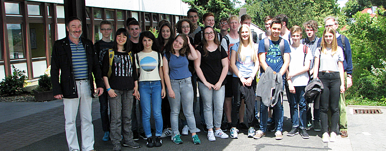 Amöneburger Schulgruppe vor dem Werkstatteingang.