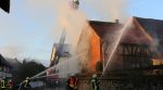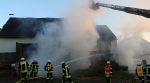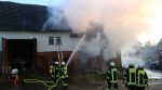 Nieder-Ohmen. In Flammen stand am Freitagmittag ein Wohnhaus mit Scheune im Mücker Gemeindeteil Nieder-Ohmen. Über fünfzig Feuerwehrleute bekämpften den Brand mit mehreren Strahlrohren und einer Drehleiter. Die Ursache für das Feuer ist noch völlig unklar, eine Streife der Polizeistation Alsfeld nahm vor Ort die Ermittlungen auf. Um dem Brand den Garaus zu machen, mussten die Feuerwehrleute mit hydraulischem Gerät eine Tür aufbrechen und im Gebäude unter Atemschutz löschen. Der in Alsfeld stationierte Gerätewagen Atemschutz des Vogelsbergkreises wurde zur Einsatzstelle gerufen, Vize-Kreisbrandinspektor Hubert Helm unterstützte die örtlichen Gemeindebrandinspektoren Stefan Hahn und Bernd Wißner. Der entstandene Sachschaden konnte noch nicht beziffert werden. Die Feuerwehr baute zwei 500 Meter lange Wegstrecken mit Schläuchen zur Ohm auf, um die Löschwasserversorgung sicher zu stellen. Das DRK Mücke war zur Unterstützung der Feuerwehrleute im Einsatz und baute unter anderem ein beheiztes Zelt auf, ein Rettungswagen stand in Bereitstellung. Im Einsatz waren die Feuerwehren Nieder-Ohmen, Flensungen, Merlau, Ruppertenrod, Atzenhain und Alsfeld mit 60 Kräften. +++ fuldainfo