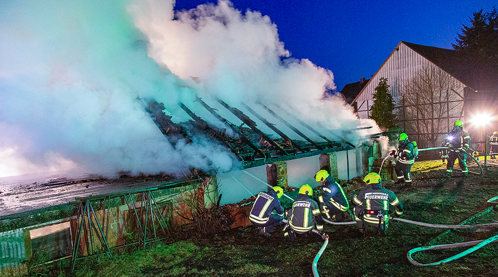 In Niederaula in Hessen wurde am Donnerstagabend eine ehemalige Schreinerei durch ein Großfeuer völlig zerstört. Der Feuerwehr wurde erst nur ein Garagenbrand gemeldet. Die ersten eintreffenden Kräfte fanden jedoch eine bereits lichterloh brennende Schreinerei vor und erhöhten die Alarmstufe. Mehrere Wehren aus der Nachbarschaft machten sich daraufhin auf den Weg zum Einsatzort. Die umstehenden Gebäude konnten mit viel Wasseraufwand geschützt werden. Von der ehemaligen Schreinerei war jedoch nichts mehr zu retten. Die dort immer noch gelagerten Holzmengen erschwerten zudem die Löscharbeiten. Zum Schluss musste das ganze Gebäude in einen Schaumteppich gelegt werden um die Flammen unter Kontrolle zu bringen. Personen kamen nicht zu Schaden. Die Polizei hat die Ermittlungen zur Brandursache aufgenommen. +++