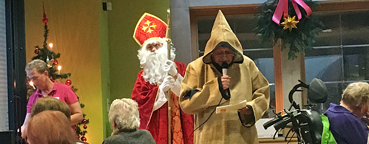 Fulda. Einen ganz besonderen Nachmittag erlebten vor Kurzem die Bewohner des DRK-Seniorenzentrums „Heilig Geist“ in Fulda bei der traditionellen Nikolausfeier der Einrichtung. Weihnachtlich gestimmt, begrüßte die Leiterin der sozialen Betreuung Christine Stüß, die Bewohner und deren Angehörigen zur Feier. Eröffnet wurde das Programm vom Kinderchor der Adolf-von-Dalberg-Schule Fulda. Bei Kaffee und Stollen, lauschten die Bewohner, Familienangehörige und Gäste dem vorweihnachtlichen Gesang. In Vorfreude auf den Nikolaus, boten anschließend die Mädchen der Kindertanzgruppe „Lollipops“ aus Eckweisbach einen fröhlichen Tanz dar. Ein besonderes Highlight waren hier die Schneeflocken, die die jungen Tänzerinnen rieseln ließen. Diese wurden zuvor von den Bewohnerinnen und Bewohnern der Einrichtung selbst gebastelt. Lang ersehnt trafen schließlich der Nikolaus und sein Knecht Ruprecht im festlich geschmückten Wohnbereich ein. Zuvor hatten sie bereits die Bewohnerinnen und Bewohner in ihren Zimmern besucht, die nicht an der Feier teilnehmen konnten. Nachdem Knecht Ruprecht die Geschichte des Nikolauses feierlich verlesen hatte, erhielten alle Anwesenden einen Schokoladen-Nikolaus. +++ pm