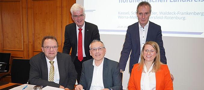 Am Mittwoch haben Winfried Becker (Schwalm-Eder-Kreis), Jürgen van der Horst (Landkreis Waldeck-Frankenberg), Nicole Rathgeber (Werra-Meißner-Kreis), Andreas Siebert (Landkreis Kassel) sowie der heimische Landrat Torsten Warnecke eine gemeinsame Resolution unter dem Motto „Es ist fünf nach zwölf! Das Geld fehlt!“ unterschrieben. Die Botschaft an Bund und Land: So kann es nicht weitergehen.