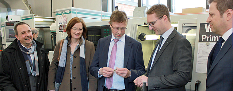 Matthias Steckenreuter (Vogelsberg Consult GmbH), Andrea Ortstadt (Wirtschaftsförderung des Kreises), Wirtschaftsdezernent Dr. Jens Mischak und Oliver Becker (Vertriebsleiter international). (v.l.) Foto: Gaby Richter