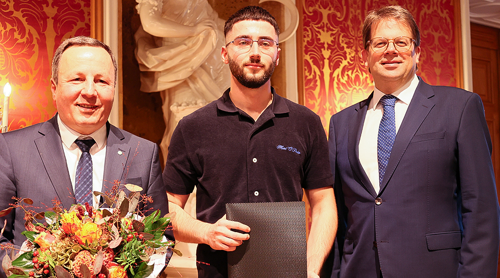 Im weiteren Redeverlauf schilderte Hochschulpräsident Professor Khakzar seine persönliche Bewunderung gegenüber dem diesjährigen Preisträger des DAAD-Preises. Seit vielen Jahren vergibt der Deutsche Akademische Austauschdienst – kurz: DAAD – den Preis für hervorragende Leistungen internationaler Studierender an deutschen Hochschulen. An der Hochschule Fulda wird der Preis seit 1997 jährlich vergeben. In diesem Jahr erhielt der aus Albanien stammende Henri Sacaj der mit 1.000 Euro dotierte Preis. Nach dem Abitur in seinem Heimatland nahm zum Wintersemester 2019/20 sowie im darauffolgenden Sommersemester 2020 zunächst am „Pre-Study-Programm“ der Hochschule Fulda teil, um seine Deutschkenntnisse aufzubessern, mit dem Ziel in Deutschland ein Studium zu beginnen. Seit dem Wintersemester 2020/21 ist er im Bachelor-Studiengang „Angewandte Informatik“ an der Hochschule Fulda immatrikuliert. Aufgrund seiner guten Noten und seines darüber hinaus erbrachten sozialen Engagements qualifizierte sich Sacaj für ein Deutschland-Stipendium. Sacaj engagierte sich in seinem Heimatland Albanien ehrenamtlich beim Deutschen Roten Kreuz sowie an der Hochschule Fulda als sogenannter „Fach-Buddy“ im „Pre-College-Programm“ des International Offices sowie als Mentor für Erstsemesterstudierende in seinem Fachbereich. Neben seinen Tätigkeiten als Tutor fungierte er ehrenamtlich als Übersetzer. Seit Mai 2022 ist Henri Sacaj Werkstudent beim Fuldaer Unternehmen Jumo im Bereich Software-Entwicklung. Seine hervorragenden Zensuren, so hieß es gestern, qualifizierten ihn auch für den Master.