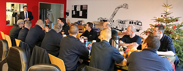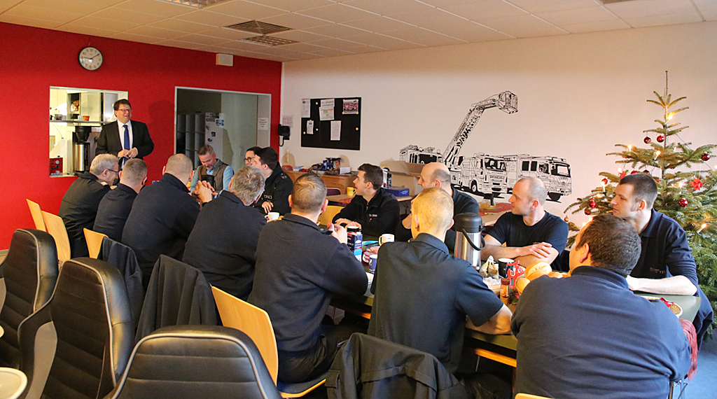 Traditionsgemäß hat der Oberbürgermeister der Stadt Fulda Dr. Heiko Wingenfeld am Vormittag vor Heiligabend den Kameradinnen und Kameraden der städtischen Feuerwehr einen Besuch abgestattet, um sich für die Einsatzbereitschaft in diesem Jahre sowie an den jetzt bevorstehenden Weihnachtsfeiertagen zu bedanken. Den Dank verband er mit einem gemeinsamen Frühstück.