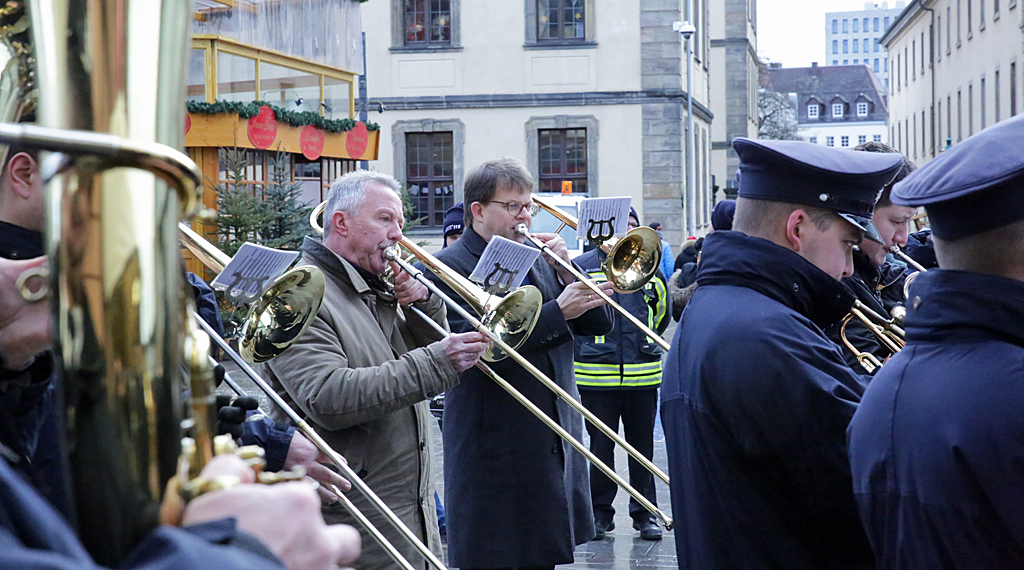 Im Nachgang seines Besuches in der Feuerwache traf sich Dr. Heiko Wingenfeld mit der Feuerwehrkapelle der Freiwilligen Feuerwehr Fulda – Dietershan zum Musizieren von Weihnachtsklängen auf dem Fuldaer Universitätsplatz. Die Tradition des gemeinsamen Musizierens bestehe bereits seit 70er Jahren. Abschließend seiner letzten Amtshandlung vor Heiligabend wünschte der Oberbürgermeister der Stadt Fulda allen Anwesenden ein geruhsames Weihnachtsfest sowie einen guten Start ins Neue Jahr. +++