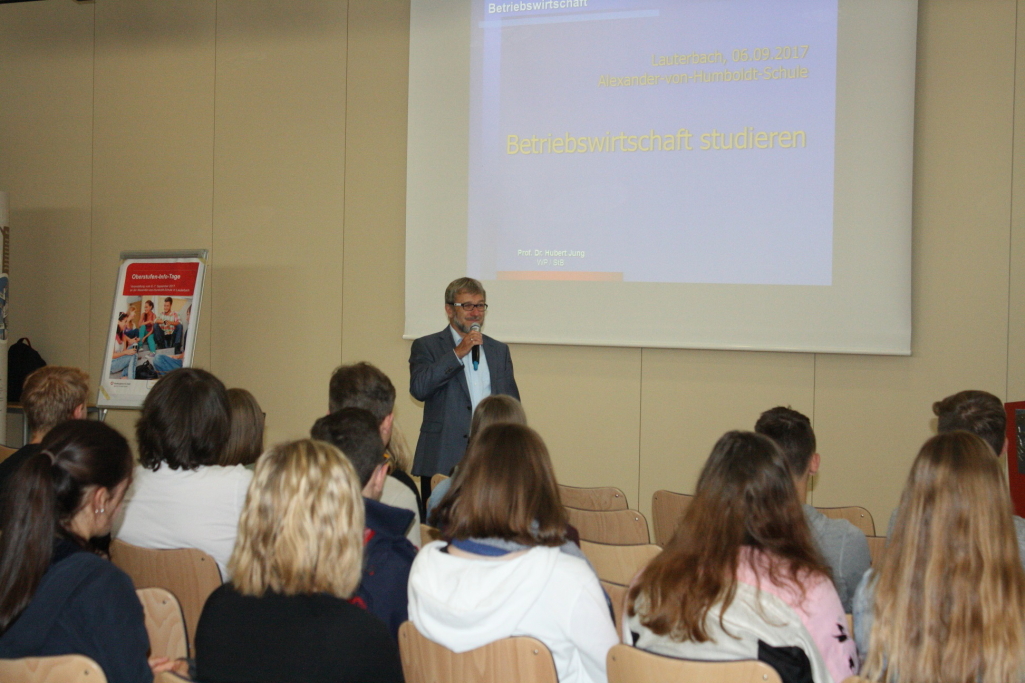 Oliver Stoy, seit Beginn dieses Schuljahres an der AvH verantwortlich für die BSO, zeigte sich erfreut über den Zuspruch, auch aus anderen Schulen. So sind die Oberstufen-Info-Tage auch dazu angetan, den Austausch der Schülerinnen und Schüler sowie der Schulen untereinander zu fördern. Es gibt sicher viel, was die jungen Leute von diesen Tagen mitnehmen können – nicht zuletzt ein ganz besonderer Rat: Prof Meyer-Abich nämlich forderte sie auf, jetzt schon immer wieder mal Vorlesungen zu besuchen, die man für später interessant findet. Und auch nach dem Abitur, wenn man den Numerus clausus für seinen Wunschstudiengang vielleicht noch nicht geschafft habe, könne man sich schon in die Vorlesungen setzen und zuhören. „Niemand kann Sie daran hindern, schlauer zu werden.“ +++ pm
