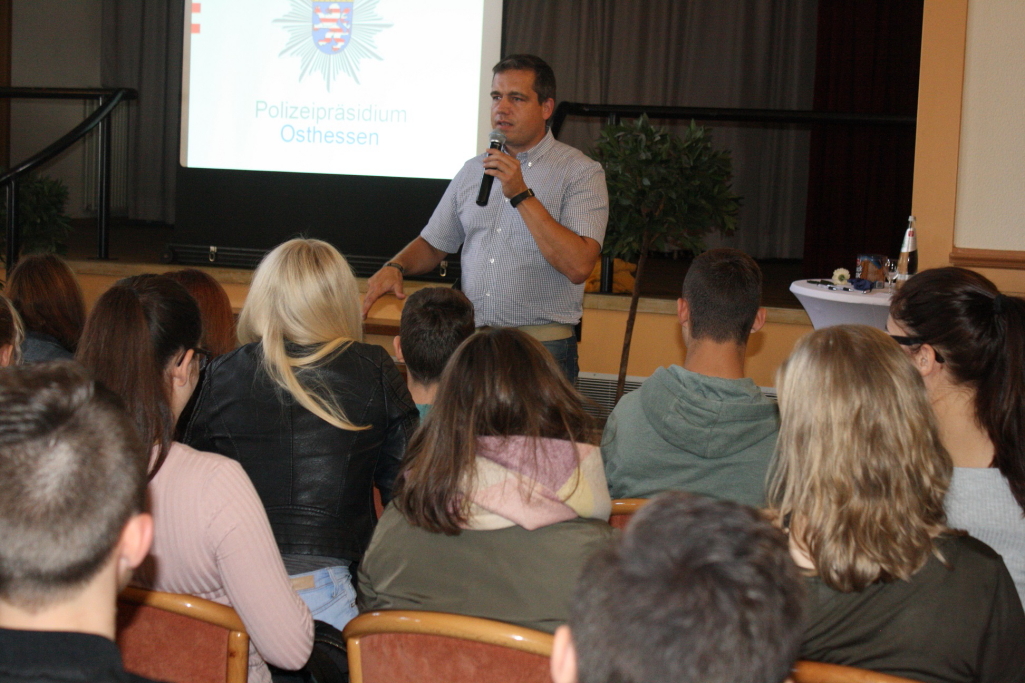 Auch in diesem Jahr nutzten wieder an die 400 junge Leute der Albert-Schweitzer-Schule und der Max-Eyth-Schule aus Alsfeld sowie der Vogelsbergschule und des Alexander-von-Humboldt-Gymnasiums aus Lauterbach dieses außergewöhnliche Angebot, das in ein ausgeklügeltes Berufs- und Studienorientierungskonzept (BSO-Konzept) der Schule eingebettet ist, wie Studienleiter Karsten Krämer zur Begrüßung der Schülerinnen und Schüler in der Aula der Schule am Mittwochmorgen erläuterte. Ab der Jahrgangsstufe 5 werden – bis hin zu den Oberstufen-Info-Tagen - altersgemäße Informationsveranstaltungen und Workshops angeboten, die zum Ziel haben, die spätere Ausbildungs- und Berufswahl in sichere Bahnen zu lenken. Beide Gymnasien im Kreis seien für dieses Engagement bereits mit dem OloV-Zertifikat ausgezeichnet worden, so Krämer über die Anstrengungen, die mit Blick auf den extremen Wandel in der Arbeitswelt und angesichts der hochkomplexen Zukunftsthemen auch nötig seien. Krämer zeigte sich erfreut darüber, dass mit Marco Sankewitz und Gerrit Lepper zwei erfahrene Berater für akademische Berufe der Arbeitsagentur mit an Bord seien, die neben ihren regelmäßigen Einzelberatungsangeboten an den beiden Gymnasien auch diesen Tag federführend organisiert hatten. „Wir sind sehr dankbar für dieses Angebot, das die Arbeitsagentur unseren Schülerinnen und Schülern alljährlich zur Verfügung stellt“, unterstrich Krämer.