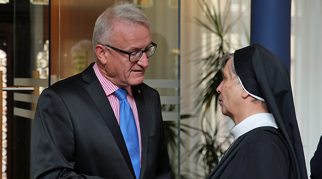 „Der Weg zur Stiftung ist der richtige Weg.“, so der Staatssekretär im Hessischen Ministerium für Soziales und Integration und Bürgermeister der Stadt Fulda a. D., Dr. Wolfgang Dippel, am Freitag anlässlich der Gründungsfeier der Vinzenz-von-Paul-Stiftung Fulda in Fulda. Daneben bekundete der Staatssekretär, der nach eigenen Bekundungen viel Positives aus dem Mutterhaus mitgenommen habe, seine persönliche Freude über das Gelingen der Stiftungsgründung. So sei die Stiftung etwas Besonderes, das Kraft und Zuversicht gebe. „Liebe sei Tat.“, der Leitsatz der barmherzigen Schwestern vom heiligen Vinzenz von Paul, sei, so der Sozialminister, gerade in der heutigen Zeit beispielgebend, dem es unbedingt gelte, zu folgen. Gerade in der heutigen Gesellschaft sei es einmal mehr wichtig, zu zeigen, dass Christen und die Demokratie zusammenstehen. „Die Würde des Menschen ist unantastbar.“, diesen Satz sollte man sich in der Aktualität der denkwürdigen politischen, wie gesellschaftspolitischen Ereignisse zunehmend verinnerlichen.