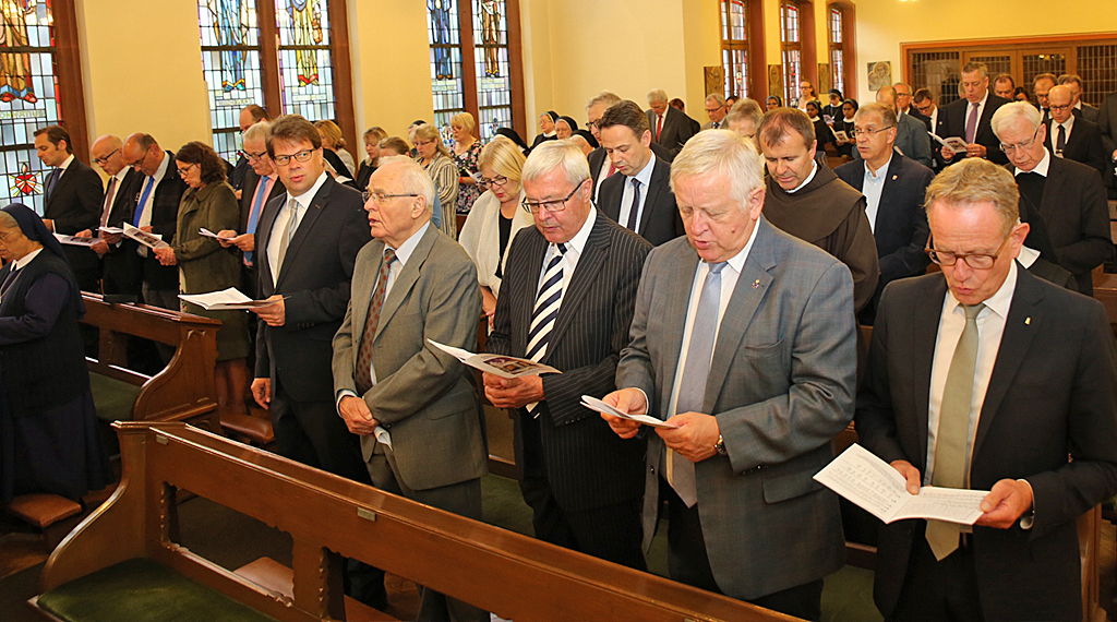 Zahlreiche Vertreter aus Kirche, Landes-, Kreis- und Kommunalpolitik, dem Hessischen Ministerium für Soziales und Integration, Gesundheit, wie sozialen Organisationen sowie leitenden Mitarbeiterinnen und Mitarbeitern hauseigener Einrichtungen sowie Mitschwestern, die die vergangenen Jahre im Generalkapitel die maßgebende Entscheidung zur Stiftungsgründung getroffen haben – darunter der Staatssekretär im Hessischen Ministerium für Soziales und Integration, Dr. Wolfgang Dippel (CDU), Landrat des Landkreises Fulda a. D., Fritz Kramer, Oberbürgermeister der Stadt Fulda a. D., Gerhard Möller, sowie der Bürgermeister der Gemeinde Hosenfeld, Peter Malolepszy (CDU) -, wohnten der Veranstaltung bei. Eröffnet wurde die Feier zur Gründung der Vinzenz-von-Paul-Stiftung Fulda mit einer gemeinsamen Eucharistiefeier der geladenen Gäste, die der Diözesanadministrator Weihbischof, Prof. Dr. theol. Karlheinz Diez, in der hauseigenen Kapelle zelebrierte.