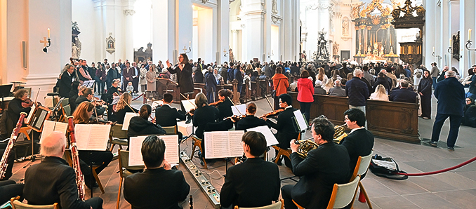 Zum Abschluss des Gottesdienstes erteilte Bischof Gerber allen Anwesenden im Namen des Papstes den apostolischen Segen. Musikalisch begleitet wurde der Gottesdienst vom Domorchester und dem Fuldaer Domchor unter Leitung von Domkapellmeister Franz-Peter Huber, unter anderem mit Chorsätzen aus der „Messe in D“ von O. Nicolai. An der Domorgel spielte Nico Miller, an der Chororgel Ulrich Moormann.