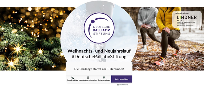 Die Deutsche PalliativStiftung startet am 3. Dezember ihre erste Online-Challenge, um Spenden zu sammeln. Schon seit langer Zeit organisiert die Stiftung unter dem Motto „Powern für Palliativ“ Sportevents und hat sich mit „I run for life“ längst einen Namen in der Läuferszene gemacht. Jetzt wagt sie sich wegen der Corona-Pandemie in digitale Sphären. Der Weihnachts- und Neujahrsspendenlauf 2020/2021 soll dabei erst der Anfang zahlreicher virtueller Events und damit auch der Start vieler weiterer sportlicher Aktivitäten der Stiftung sein.