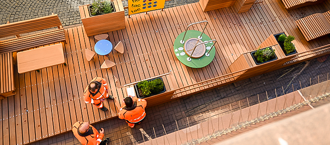 „Die Entscheidung, das Parklet durch den Bauhof zu realisieren, war nach einer Sondierung des Marktes genau die Richtige“, so Bauhofleiter Johannes Biedenbach, und fügte an, dass er bei seinem Team keine Überzeugungsarbeit für das Projekt leisten musste. „Die Erfahrung und Kompetenz dafür haben wir in den eigenen Reihen mehr als genug“ so Biedenbach und unterstrich, dass das Team der Schlosser und Schreiner ganze Arbeit geleistet habe.