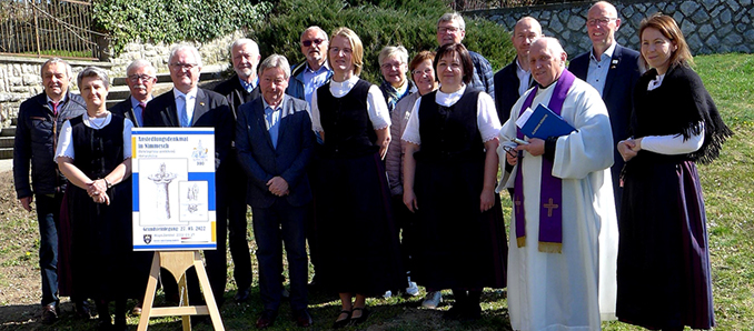 Die Delegation konnte auch der Grundsteinlegung für das zu errichtende Ansiedlungsdenkmal beiwohnen. Es solle an die deutschen Vorfahren erinnern, die vor 300 Jahren auch aus dem Fuldaer Land in der hügeligen Landschaft eine neue Heimat gefunden hätten, so Aniko Mezei-Kramm. Sie senkte gemeinsam mit dem Nimmescher Bürgermeister Peter Pataki den Grundstein, der von Ortspfarrer József Erb gesegnet wurde, in die Erde. Man stehe heute auf dem Heldenplatz und gedenke der ersten Ansiedler, die Sprache, Kultur, Glauben und die Tradition mitgebracht hätten. Trotz Kriege, Revolution und dem Unrecht nach dem 2. Weltkrieg seien diese bis heute bewahrt worden.