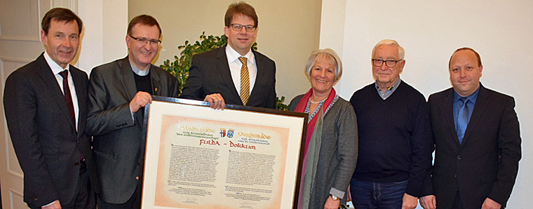 Dekan Bengt Seeberg, Stadtpfarrer Stefan Buß, Oberbürgermeister Dr. Heiko Wingenfeld, Veronika Wagner, Prof. Dieter Wagner, Frank Post.