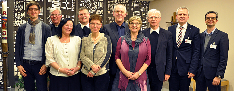 Nico Tucher, Weihbischof Prof. Dr. Karlheinz Diez, Pfarrerin Sonja Panhoff, Domkapitular Christof Steinert, Gemeindereferentin Hannelore Dauzenroth, Pastoralreferent Günter Tucher mit Ehefrau Dorit Tucher, Generalvikar Prof. Dr. Gerhard Stanke, Priv.-Doz. Dr. Thomas Menzel und André Eydt, Vorstände Klinikum Fulda gAG . (v.l.)
