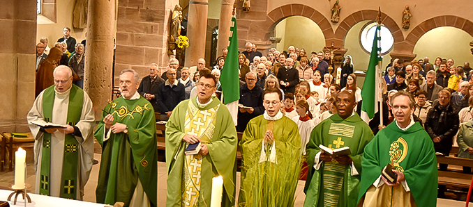 Unter dem Leitgedanken „Gemeinsam unterwegs“ hat der Pastoralverbund Hessisches Kegelspiel am Sonntag zu einem Gottesdienst in die Stiftskirche in Rasdorf eingeladen. Zahlreiche Gläubige aus allen Gemeinden des Verbunds kamen zu der Feier, die von leitendem Pfarrer Markus C. Günther zusammen mit den Priestern Andreas Matthäi, Aloysius Ndiukwu, Marcel Krawietz, Winfried Vogel und Peter Hannappel zelebriert wurde.