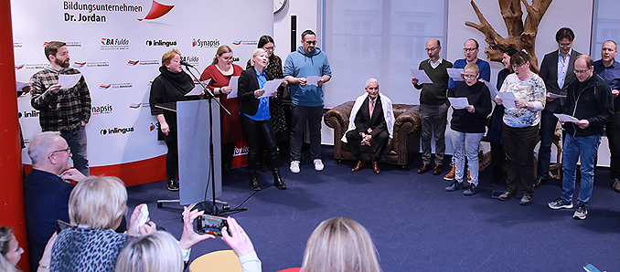 Es war ein bewegender Abschied – nicht nur für den Geehrten selbst, der gestern nach über 15-jähriger Tätigkeit am Fuldaer Bildungsunternehmen Dr. Jordan im Kreise von Direktion, Kollegium und Weggefährten aus der Fuldaer Schullandschaft in den Ruhestand verabschiedet wurde. Über 15 Jahre leitete Vater, der einige Jahre zuvor bereits als Direktor des Staatlichen Schulamtes für den Landkreis Fulda Verantwortung übernommen hatte, gemeinsam mit seinem Freund, Weggefährten und engem Vertrauten, dem Vorstand der Direktion des Bildungsunternehmens Professor Dr. Lothar Jordan die Geschicke des Unternehmens geleitet. Gestern, dem 70. Geburtstag des Namensgebers des Bildungsunternehmens, hieß es für Vater, nach vielen Jahren enger, vertrauensvoller sowie sehr kollegialer Zusammenarbeit Abschied nehmen.