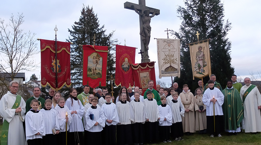 Mit einer feierlichen Eucharistiefeier verabschiedete sich Pfarrer Andreas Matthäi aus der Pfarrei „St. Margareta“, Margretenhaun. Seit dem 01. Januar 2025 gehört die ehemalige Pfarrei zu der neu entstandenen Pfarrei „Heilige Schutzengel Vorderrhön“. Im Abschiedsgottesdienst konzelebrierten mit dem scheidenden Pfarrer Dechant Carsten Noll, Eckweisbach, Pfarrer und Leiter der neuen Pfarrei Piotr Kownacki, Dipperz, Markus Günther, Pfarrer des zukünftigen Wirkungsortes, die Pfarrer Michael Heidel, Hofbieber und Bruno Kono, Fulda, sowie die Diakone Bernhard Schindler, Margretenhaun und Manfred Öste, Elters. Abschied nehmen sei mit Wehmut, Loslassen und einem Blick in die Zukunft verbunden, so Pfarrer Andreas Matthäi zu Beginn des Gottesdienstes.