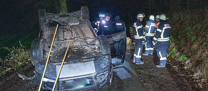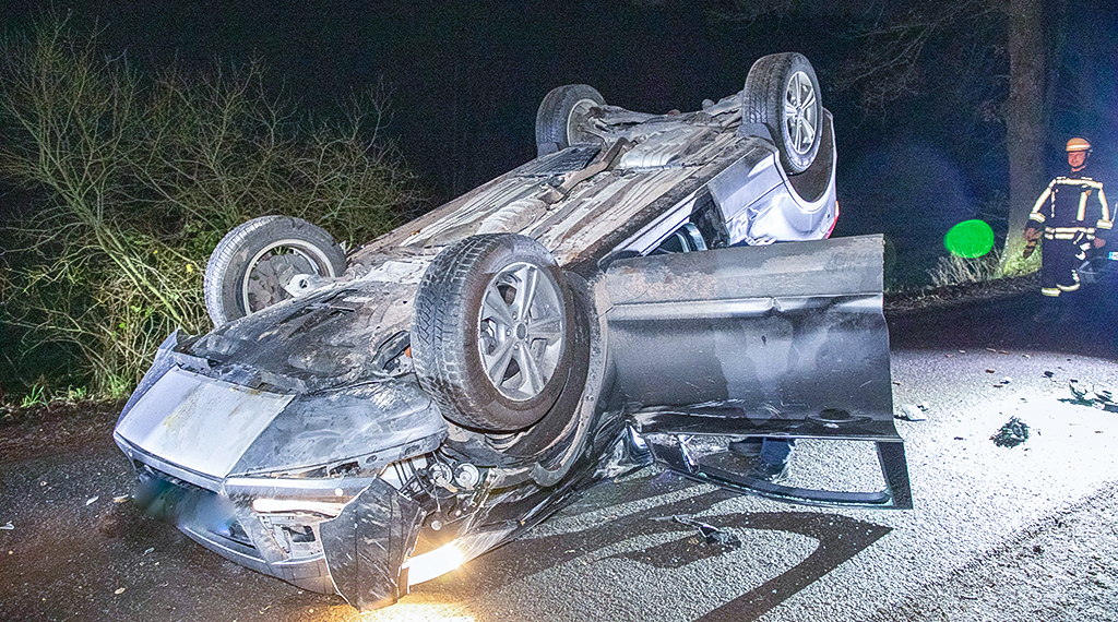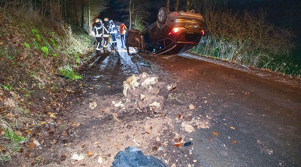 Pkw kollidiert mit Wildschwein und überschlägt sich