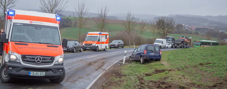 Bei einem schweren Verkehrsunfall der Landstraße zwischen Kleinlüder und Fulda sind am Freitagmittag beide Insassen eines Pkw schwer verletzt worden. Ersten Angaben zufolge brach das Heck des Autos in einer Rechtskurve auf regennasser Fahrbahn aus, so dass der 65-jährige Fahrer die Kontrolle über das Steuer verlor. Der Wagen rutschte daraufhin von der Landstraße und überschlug sich. Rettungskräfte brachten den Mann und seine 75 Jahre alte Beifahrerin in ein Krankenhaus. Auch ein Rettungshubschrauber war im Einsatz. Aufgrund des Unfalls und der Hubschraubereinsatzes musste die Landstraße zeitweise voll gesperrt werden. +++