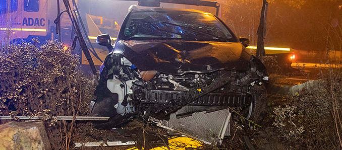 Pkw kracht über Verkehrsinsel