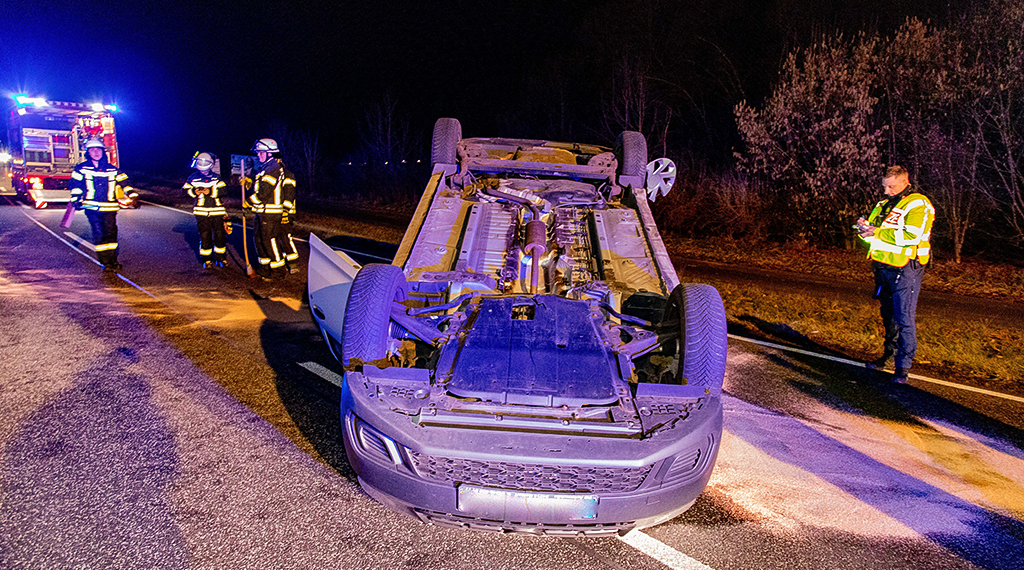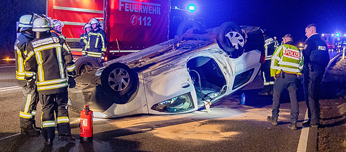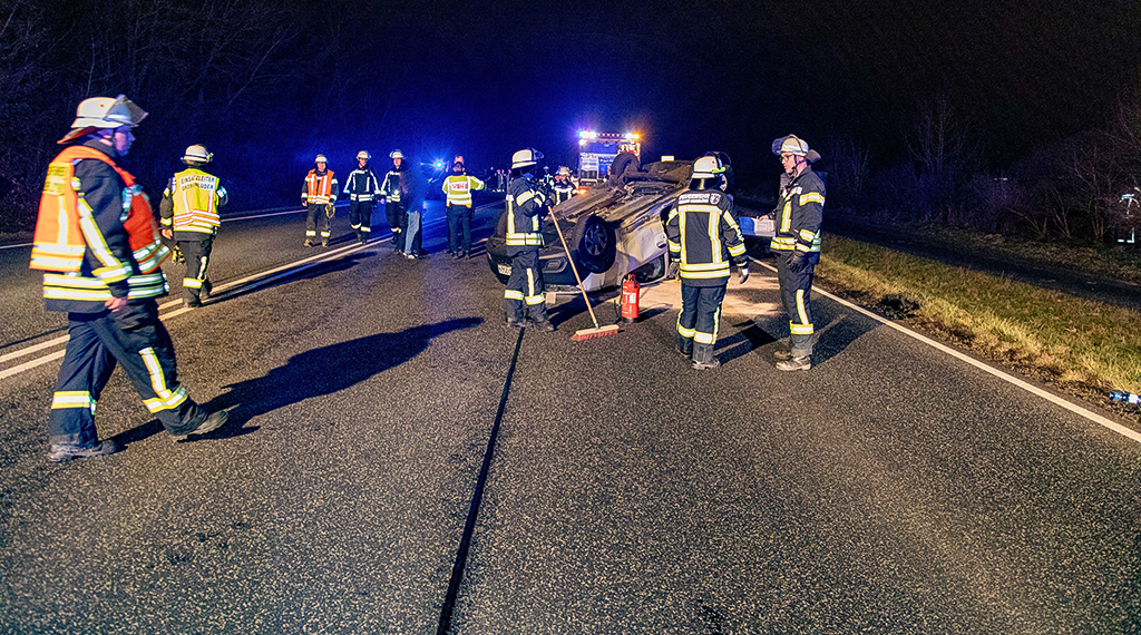 Auf der B254 zwischen Fulda-Rodges und Großenlüder-Bimbach gab es am Samstagabend um 21.45 Uhr einen Unfall mit zwei Autos. Eines davon überschlug sich.