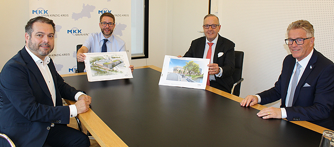 Wichtiger Meilenstein in den zurückliegenden Wochen war auch der Abschluss eines Vormietvertrages zwischen dem Main-Kinzig-Kreis und der Kreissparkasse Gelnhausen. Insgesamt mietet der Main-Kinzig-Kreis rund 11.000 Quadratmeter Bürofläche, um große Teile seiner über das Stadtgebiet von Gelnhausen verteilten Außenstellen zusammenzuführen und in der Innenstadt zu zentralisieren. „Die Lage in der Innenstadt, mit unmittelbarer Anbindung an den zentralen Busbahnhof und den Bahnhof in der Kreisstadt, ist sowohl für Bürgerinnen und Bürger als auch für die Mitarbeiter, geradezu ideal“, machen Landrat Thorsten Stolz und Kreisbeigeordneter Winfried Ottmann deutlich. Neben Verwaltungsbereichen des Main-Kinzig-Kreises ist ein Medienzentrum geplant. Hierzu sollen die Bibliothek der Beruflichen Schulen, das Medienzentrum des Main-Kinzig-Kreises und die Grimmelshausen-Bibiliothek der Stadt Gelnhausen in einem gemeinsamen Projekt zusammengeführt geführt werden. „Das wird eine große Bereicherung in Sachen Bildung und Kultur für den Main-Kinzig-Kreis und eine Einrichtung, die allen Bürgerinnen und Bürgern des Kreises offensteht“, machen Thorsten Stolz und Winfried Ottmann deutlich. Für Winfried Ottmann, der Schuldezernent des Main-Kinzig-Kreises ist, hat insbesondere die Nähe zu den Beruflichen Schulen ihren Charme: „Hier muss es uns gelingen, über das Medienzentrum auch eine moderne Lernwelt zu schaffen, die möglichst von vielen unterschiedlichen Gruppen genutzt wird.“