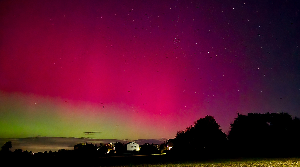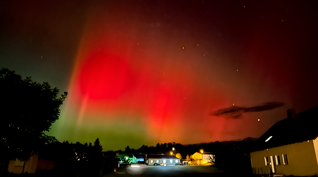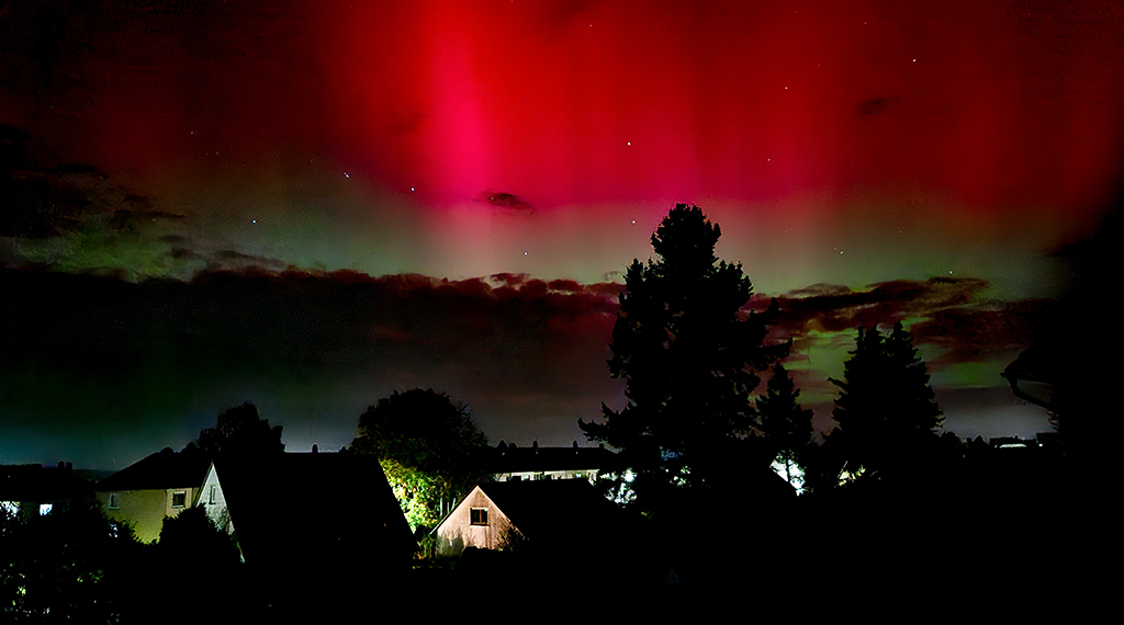 Fotografen konnten das Himmelsspektakel in seiner vollen Pracht festhalten. Moderne Smartphones reichen bereits aus, um die leuchtenden Farben am Nachthimmel einzufangen. Die Sonnenaktivität bleibt weiterhin hoch, sodass die Chance besteht, auch in den kommenden Nächten Polarlichter am Himmel über Deutschland zu beobachten. +++ kec