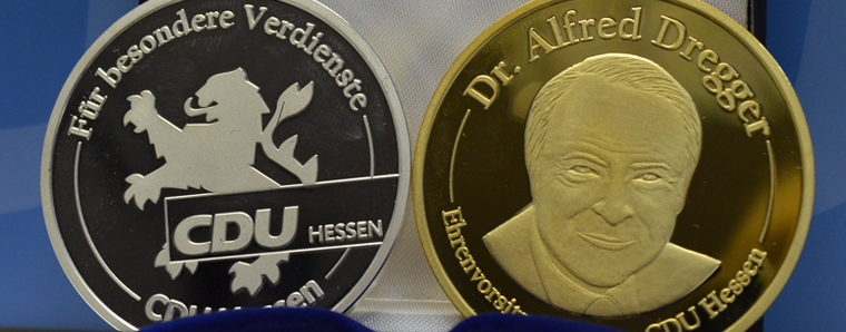 Wiesbaden/Fulda. Mit der Alfred-Dregger-Medaille werden vom CDU-Landesverband Hessen jene Mitglieder ausgezeichnet, die sich in besonderer Weise um die Partei verdient gemacht haben. Sie kann von den Kreisverbänden in Silber und vom Landesvorstand in Gold verliehen werden. Nach Dagmar Dregger, die diese Auszeichnung bereits 2013 als Anerkennung für den engagierten Beitrag an der Seite ihres Ehemannes bekam, wird die Alfred-Dregger-Medaille nun gleichsam erstmalig an verdiente Personen aus dem CDU-Kreisverband Fulda verliehen.