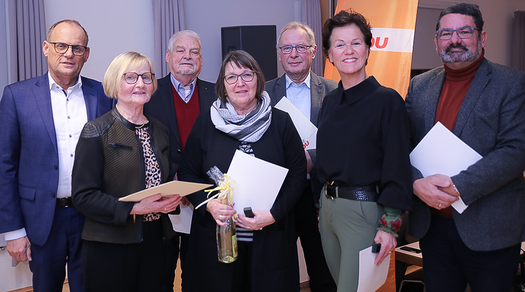 Im zweiten Teil der politischen Veranstaltung wurden sechs Mitglieder für deren langjährige Parteizugehörigkeit geehrt und mit einer Urkunde und Ehrennadel bedacht. Die Ehrungen wurden von Johannes Uth vorgenommen. Für 50 Jahre Mitgliedschaft in der CDU wurden Wolf Rüdiger Bellinger und Peter Klasmeier geehrt. Für 40 Jahre Parteizugehörigkeit wurden Dr. Albert Post und dessen Ehefrau Maria Stollberg-Post geehrt. Eine Urkunde für 25 Jahre Mitgliedschaft in der CDU wurde Annette Orth geehrt. Nachträglich für 25 Jahre in der CDU wurde die Vorsitzende der CDU-Stadtverordnetenfraktion Patricia Fehrmann geehrt. Fehrmanns Mitgliedschaft in der Partei zählte bereits im vergangenen Jahr 25 Jahre. Nach dem CDU-Stadtverbandsvorsitzenden, Bürgermeister Dag Wehner verleihe Patricia Fehrmann neben der Stadtverordnetenvorsteherin Margarete Hartmann der CDU Gesicht, Anerkennung und Persönlichkeit, eine, nach Wehner, in der aktuellen Zeit „herausfordernde Aufgabe“. Wehner und Fehrmann haben vor 25 Jahren gemeinsam damit begonnen, sich kommunalpolitisch in der CDU zu engagieren. Wie Wehner am Mittwochabend betonte, sei die gemeinsame Arbeit in der Partei immer eine sehr vertrauensvolle und „von großer Harmonie“ geprägt gewesen. „Es ist mir deshalb, liebe Patricia, eine besondere Ehre, Dich heute Abend nachträglich für 25 Jahre Mitgliedschaft in der CDU ehren zu dürfen“, so der CDU-Stadtverbandsvorsitzende, Bürgermeister Dag Wehner, auf dem Politischen Aschermittwoch des Stadtverbandes in Fulda-Gläserzell, der darüber hinaus allen Parteimitgliedern für ihr Engagement dankte. +++ jessica auth