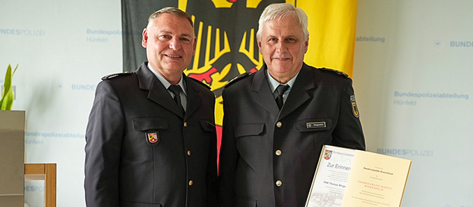 Nachdem Thomas Wingenfeld im Rahmen der BGS-Ausbildung bereits 1983 das zweite Dienstjahr in Hünfeld absolvierte, war er seit Dezember 1984 Angehöriger der Abteilung. Seine Kenntnisse als gelernter Radio- und Fernsehtechniker setzte er für die Bundespolizei stets gewinnbringend ein. Er bildete sich immer wieder fort und gab seine über Jahrzehnte gewachsene Expertise im Bereich der Informations-, Foto- und Videotechnik an unzählige Kolleginnen und Kollegen weiter. +++