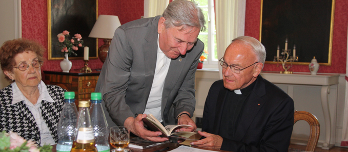 Bogdan Bartnikowski übereicht Boschof Algermissen sein Erinnerungsbuch.
