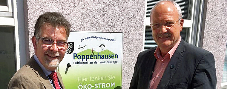 Poppenhausen. Die Gemeinde Poppenhausen (Wasserkuppe) liegt mitten im UNESCO-Biosphärenreservat Rhön. Dass Nachhaltigkeit hier auch in puncto Energie groß geschrieben wird, zeigen zwei aktuelle Projekte in Kooperation mit der RhönEnergie Fulda: Alle gemeindlichen Liegenschaften und Anlagen werden inzwischen zu 100 Prozent mit hochwertigem Öko-Strom betrieben. Und im Ortskern am Rathaus steht jetzt eine Ladestation für E-Bikes zur Verfügung, die ebenfalls mit Öko-Strom gespeist wird.